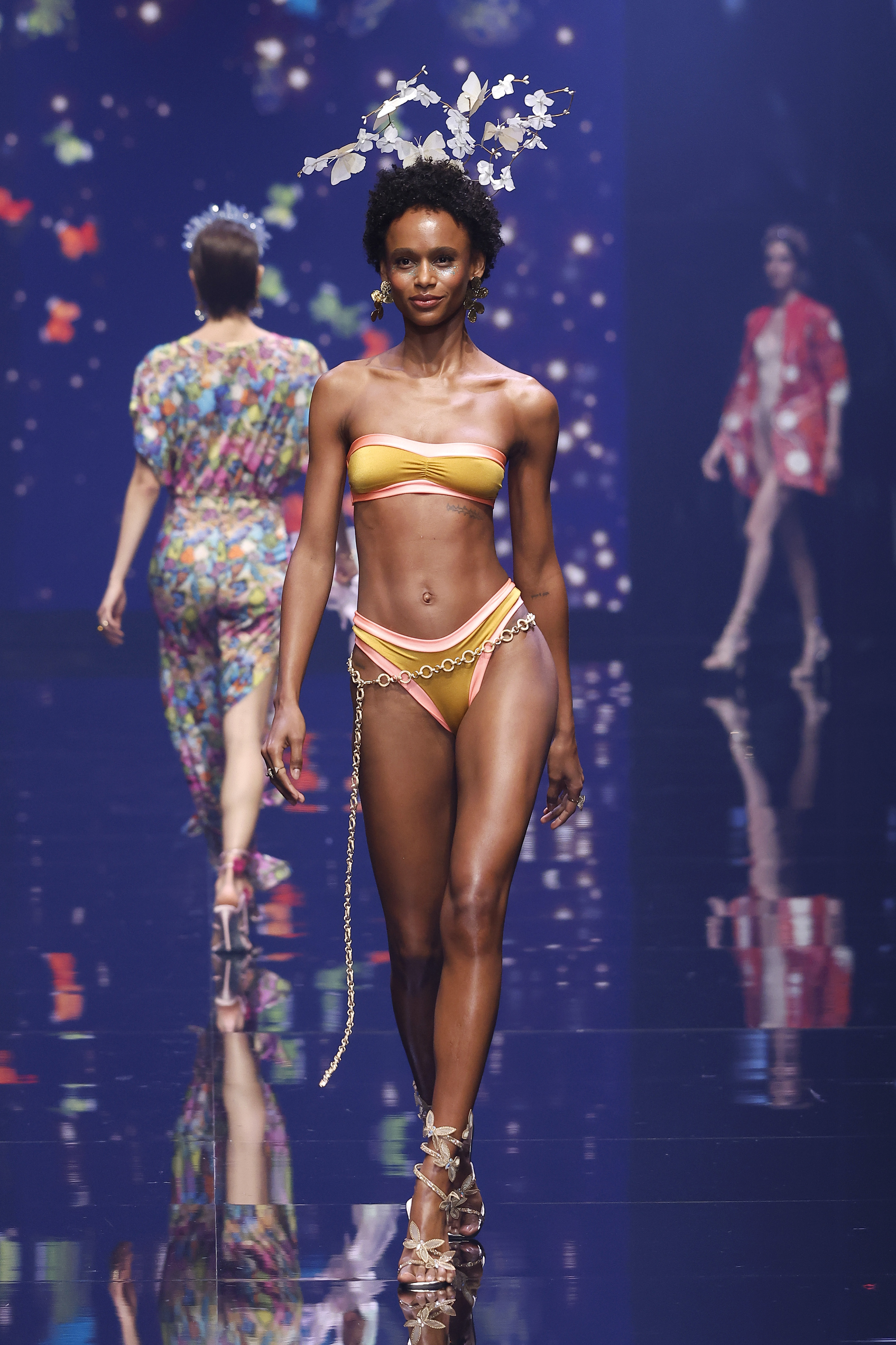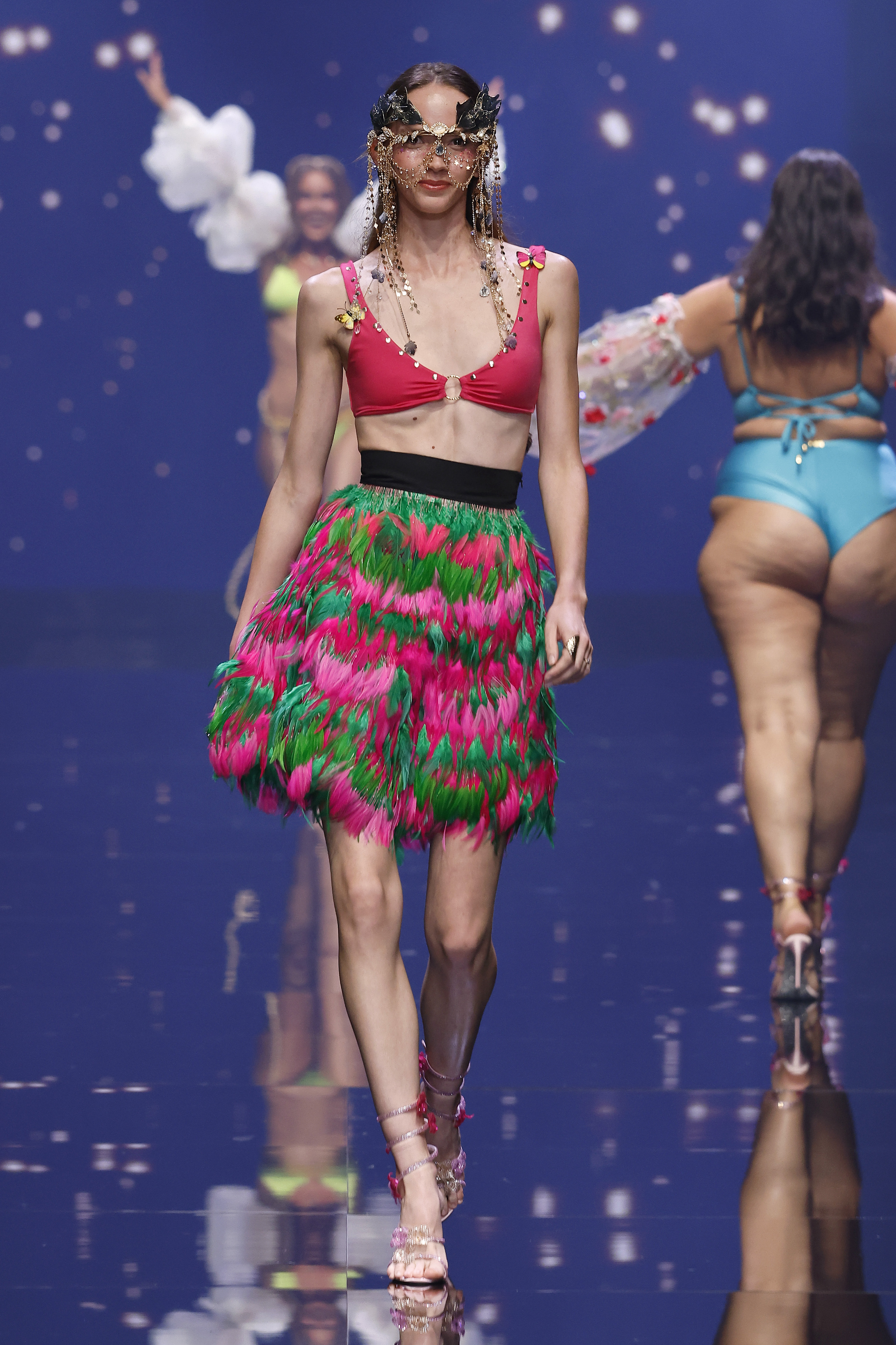 With a vibrant, contrasting color palette, innovative textures, and unique details, the swimwear collection by MalditoSweet stands out for its rebellious style and versatility — creating a bridge between the magic of the past and the reality of today. Decorative elements like metallic rings at the neckline and bold color combinations nod to the mystical and the unknown.